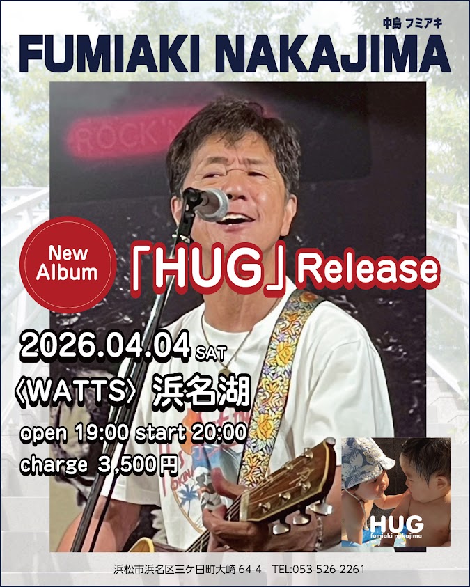 2026年4月4日(土) New Album「HUG」発売ライブ!〈WATTS〉浜名湖